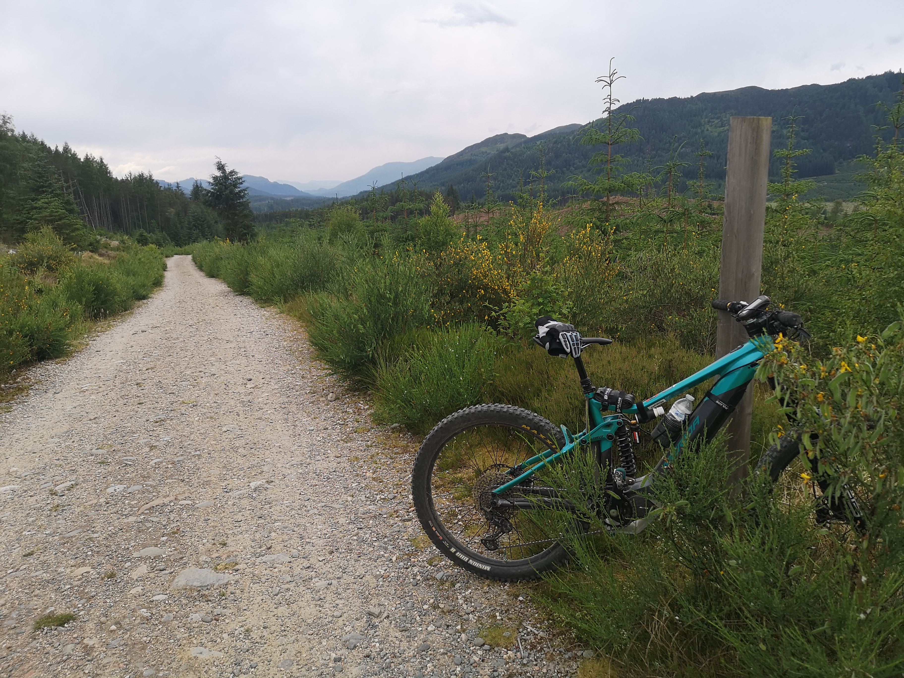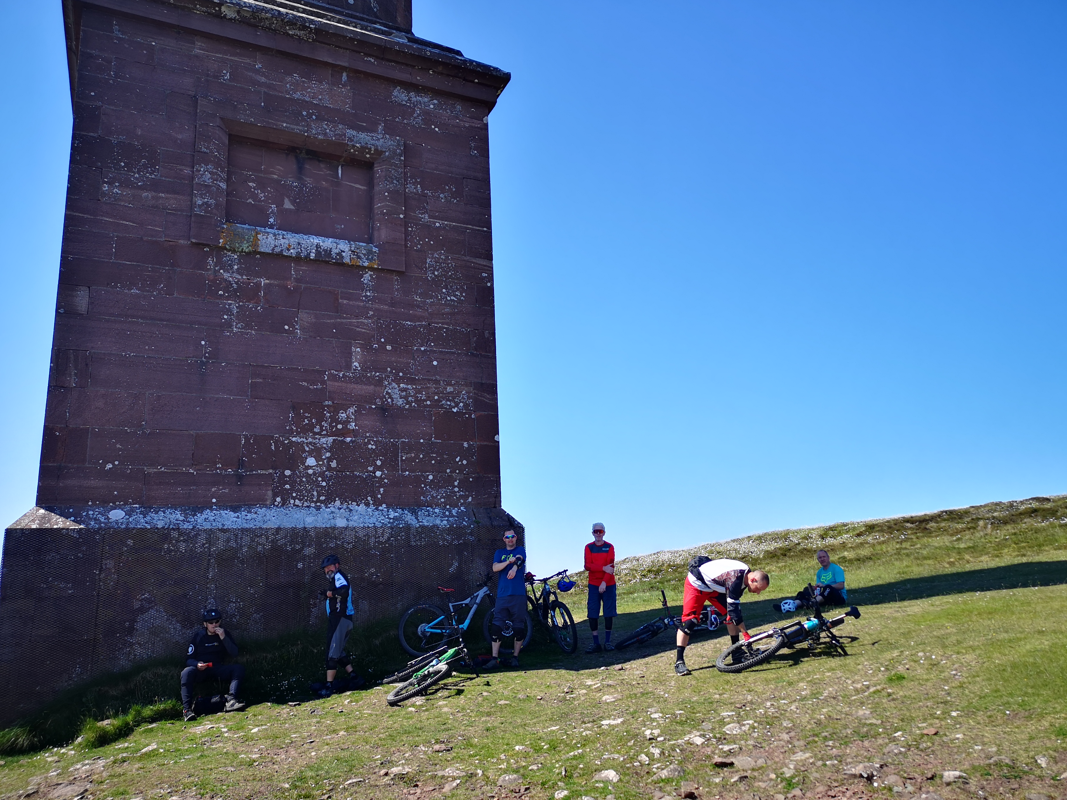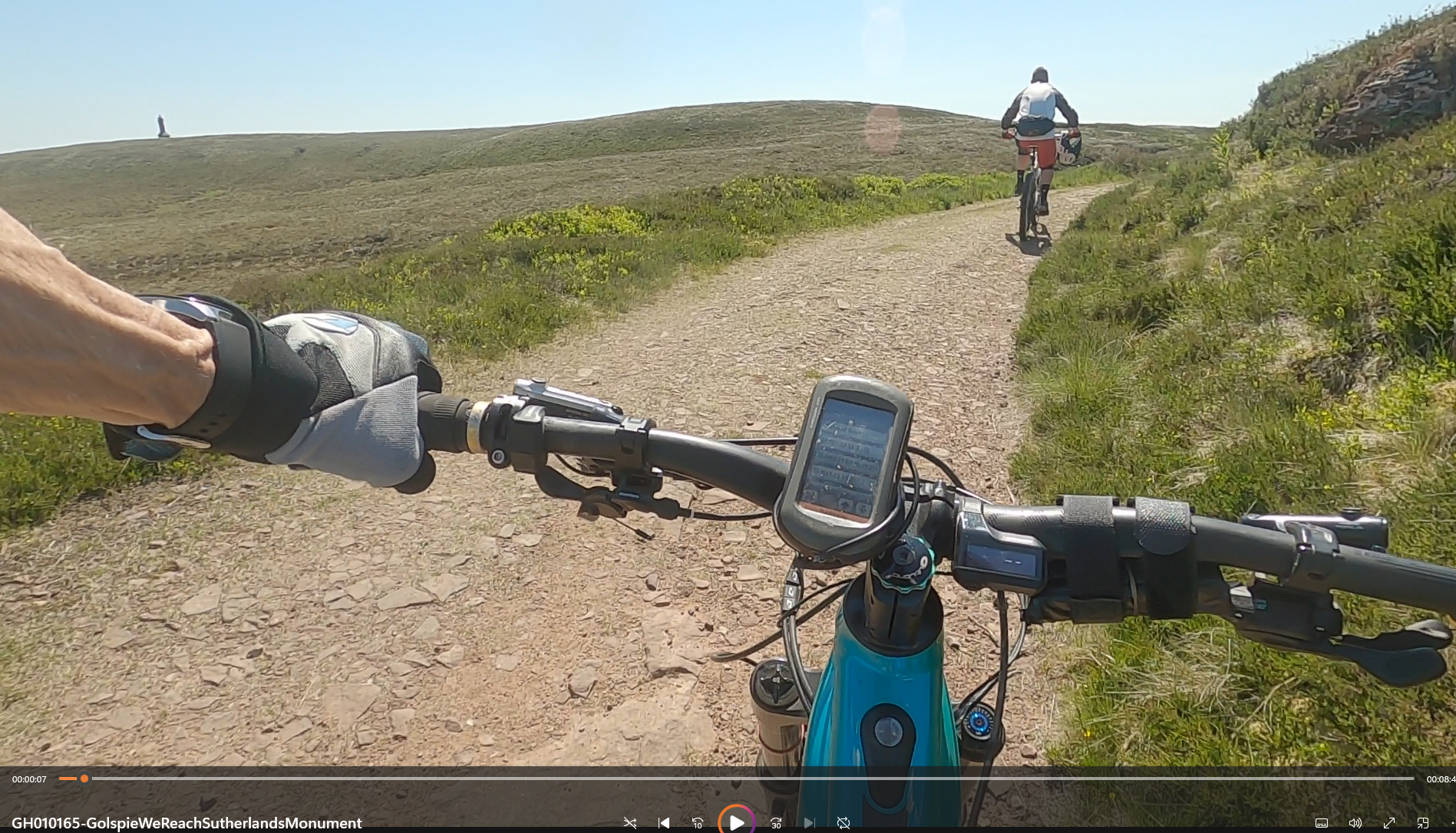 The first thing I noticed, shortly after we'd been craning our necks looking up at the grand old Duke of Sutherland's statue miles up in the sky from way down in the car park, was how extremely kind the climb was, at least the first big slice of it. A really gentle, twisting ascent through the trees covering the foot of the hill. It did get a bit more engaging further up but still not the same killer as the more commonly visited trail centres. Even so, If you turn the sound up you'll hear my eeb-assisted ticker when we paused and you can see the cable bouncing lower right corner!