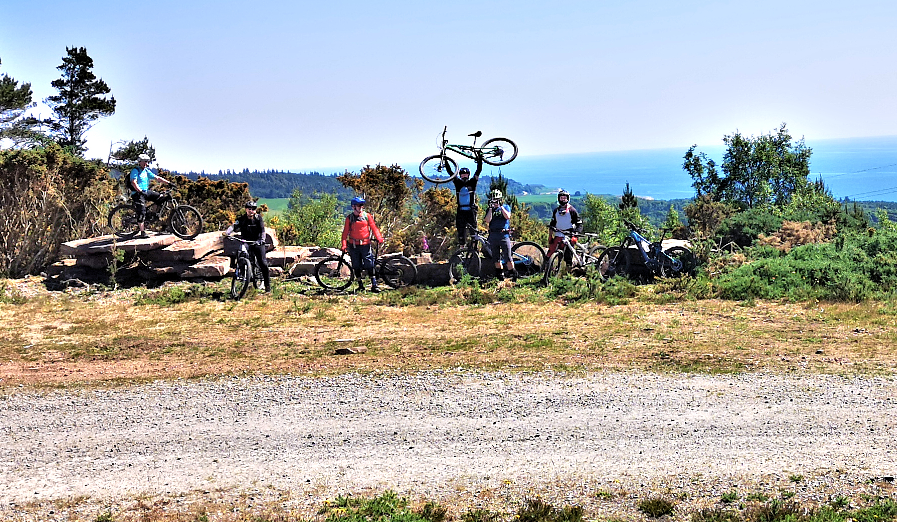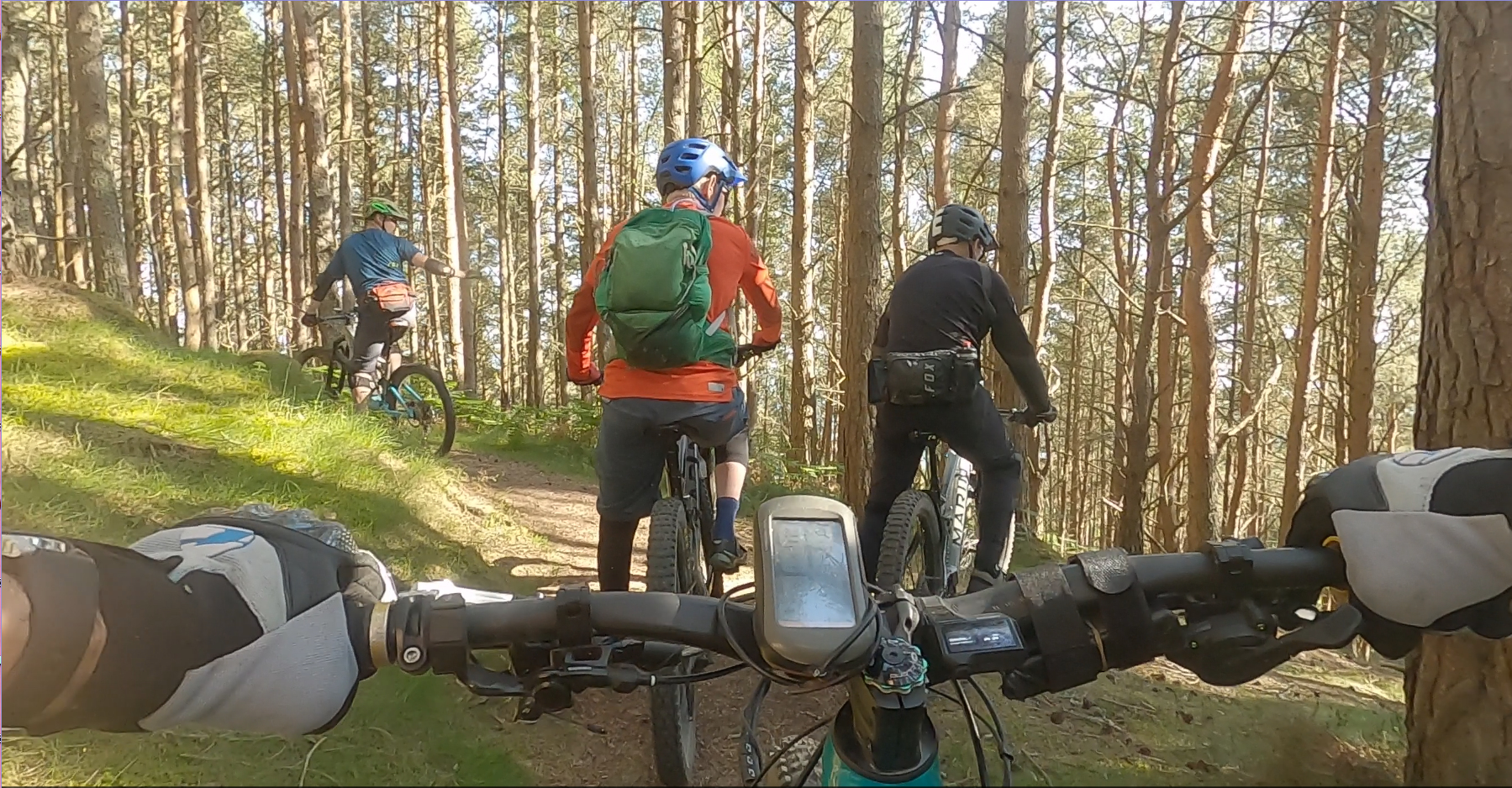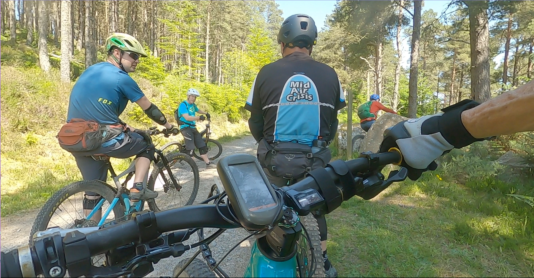 Ian to the rescue now. He was still suffering from the previous days' climbs and exertion due to a lack of outings over the last month or two so he suggested he'd hire an e-bike to ease his pain. Grant, therefore, was able to use Ian's Boardman 29er. Job's a good'un. The substitute bike was a fairly new Marin E1, with just a wee bit lower spec than the matching pair of E2s Ray and Terry were on, so the powered to manual odds were now up to 5:3.