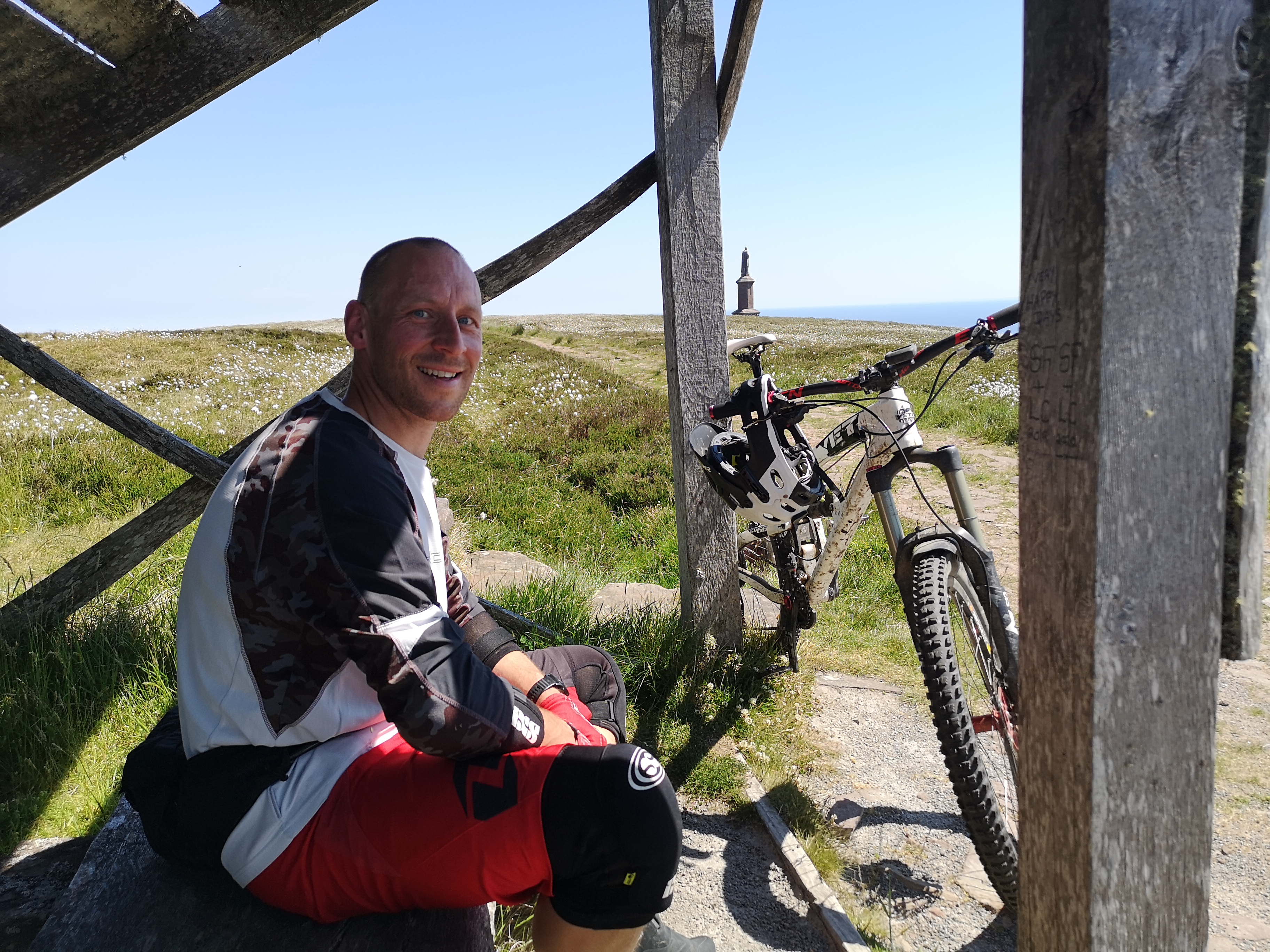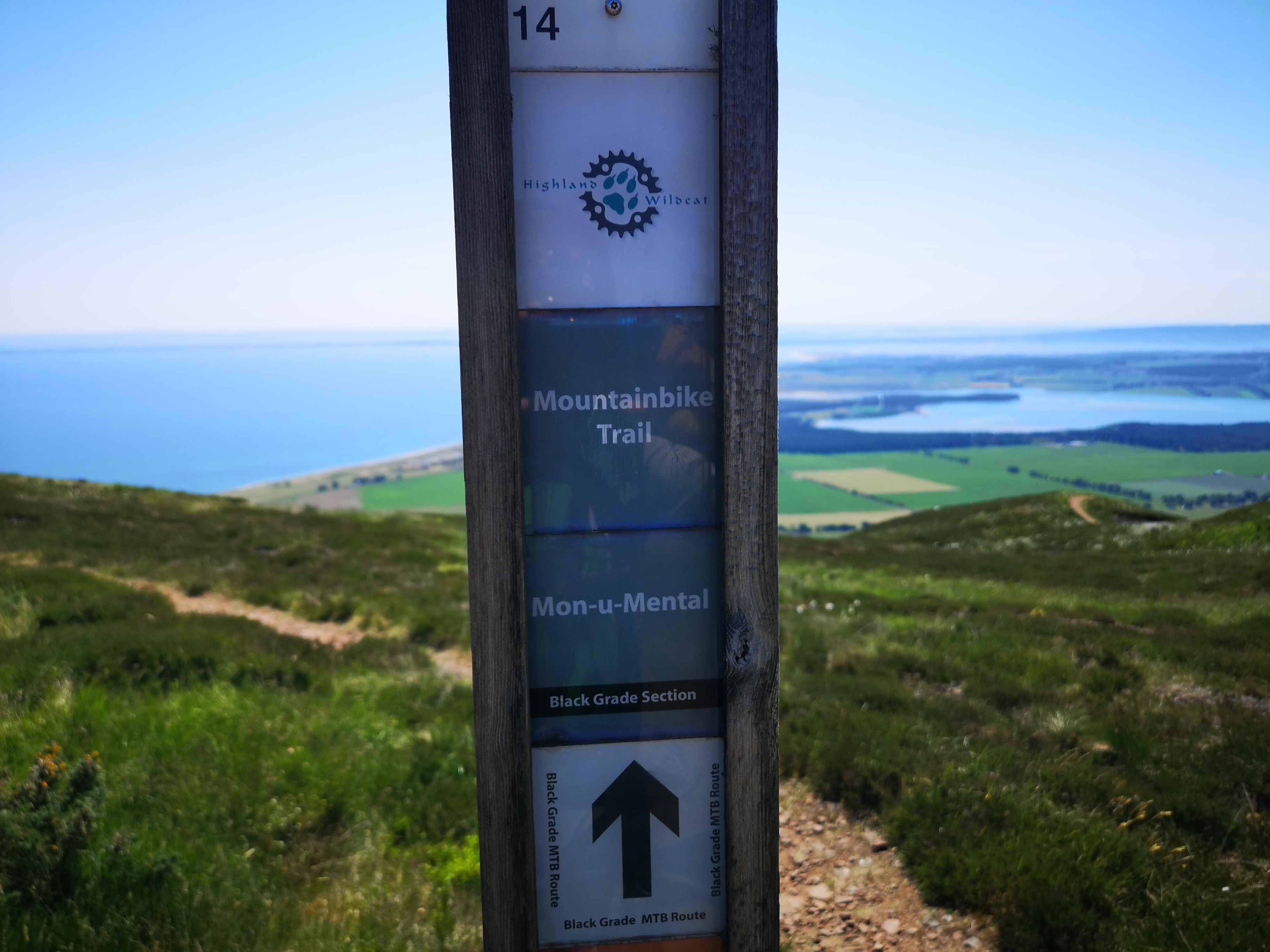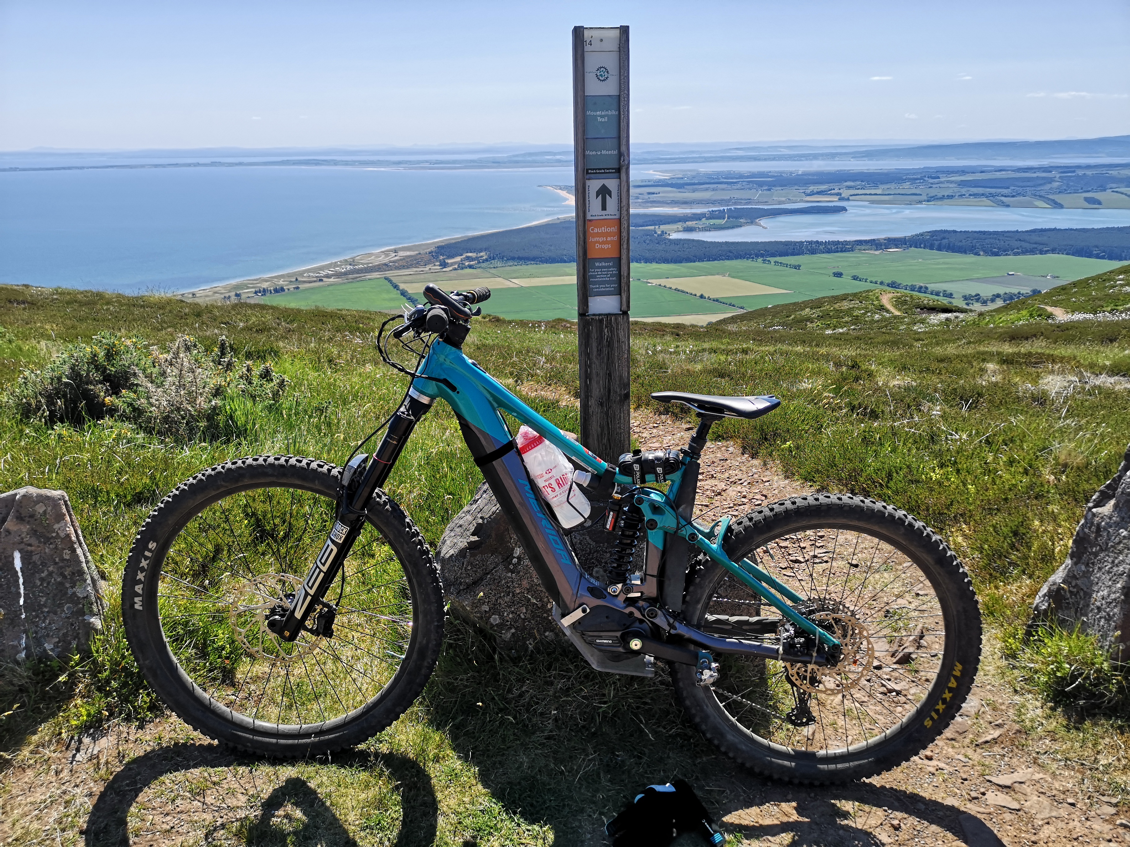 because my fingers were in the way, and the borrowed brake needed full travel (It's fine now, bled it back at home, a wee bit late), and my desire to have the full fork stanchions displayed at all times (hence slightly firm front suspension), I had a bit of a struggle. However, had everything been normal, two working brakes and a bit of sag - what a trail the Higland Wildcat is! So I couldn't help but enjoy it anyway. I did have another problem which didn't help - I couldn't stop glancing away at my fantastic surroundings, particularly that stunning coastal view and south over the Three Firths. Another highly unexciting video here as we come off the top. A bit lower doon here. And slightly later here.