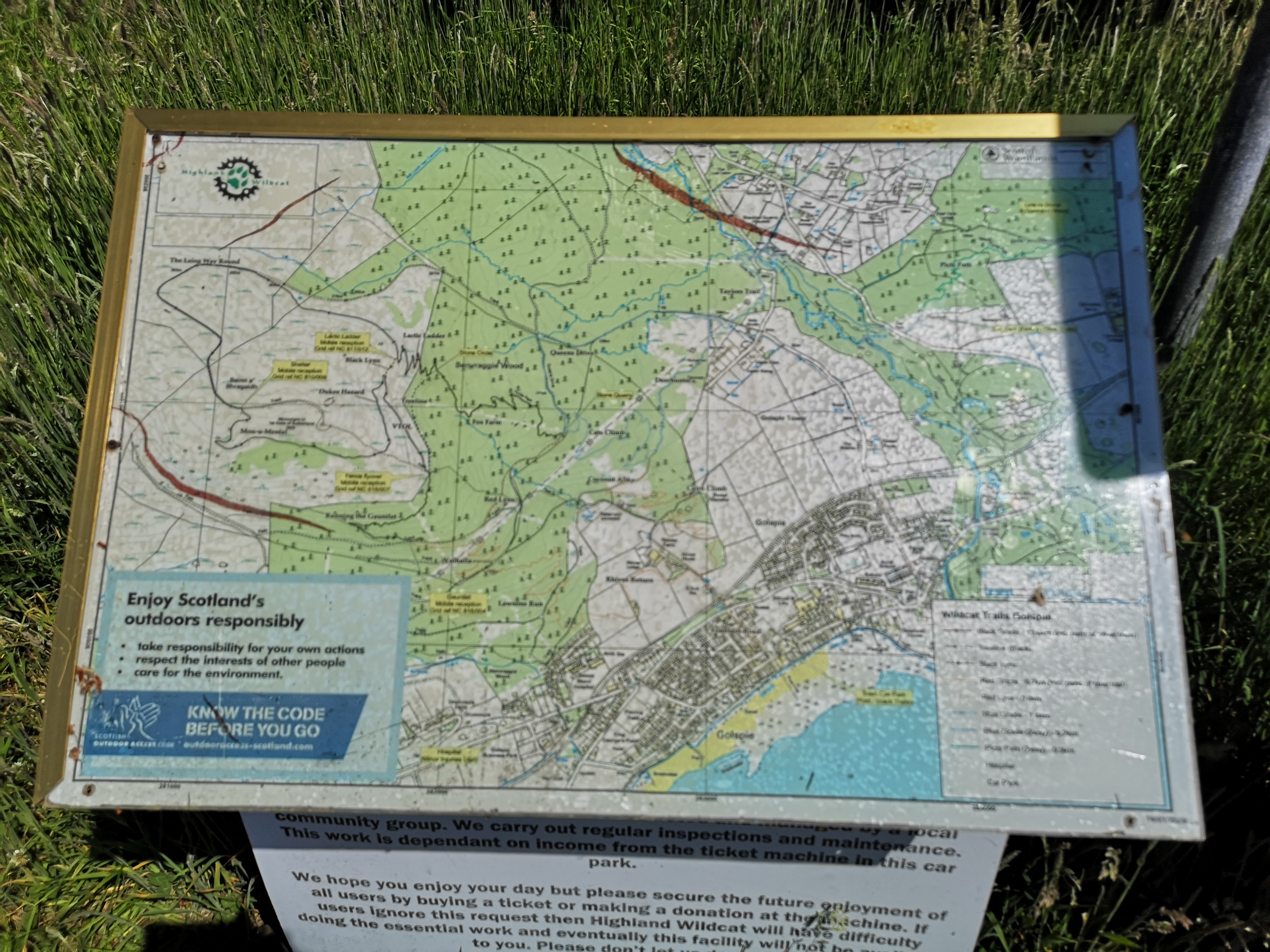 Back at the cars there were some questions about the next phase of my plan, but I wasn't phased, so I held out and an hour later we ended up in the car park at Learnie Red Rock trails on the so-called Black Isle (not really an island) just north east of Inverness. This one provided more of what we're used to with a hard climb to reach the top but once again stunning views over both the Cromarty and Moray Firths. If we'd known where to look we'd have spotted our temporary home in the distance over the latter. I'd probably liken this to something like the Hamsterley Blacks but a fair bit rockier. This trail really did hit already tired legs hard, but we all got it done.