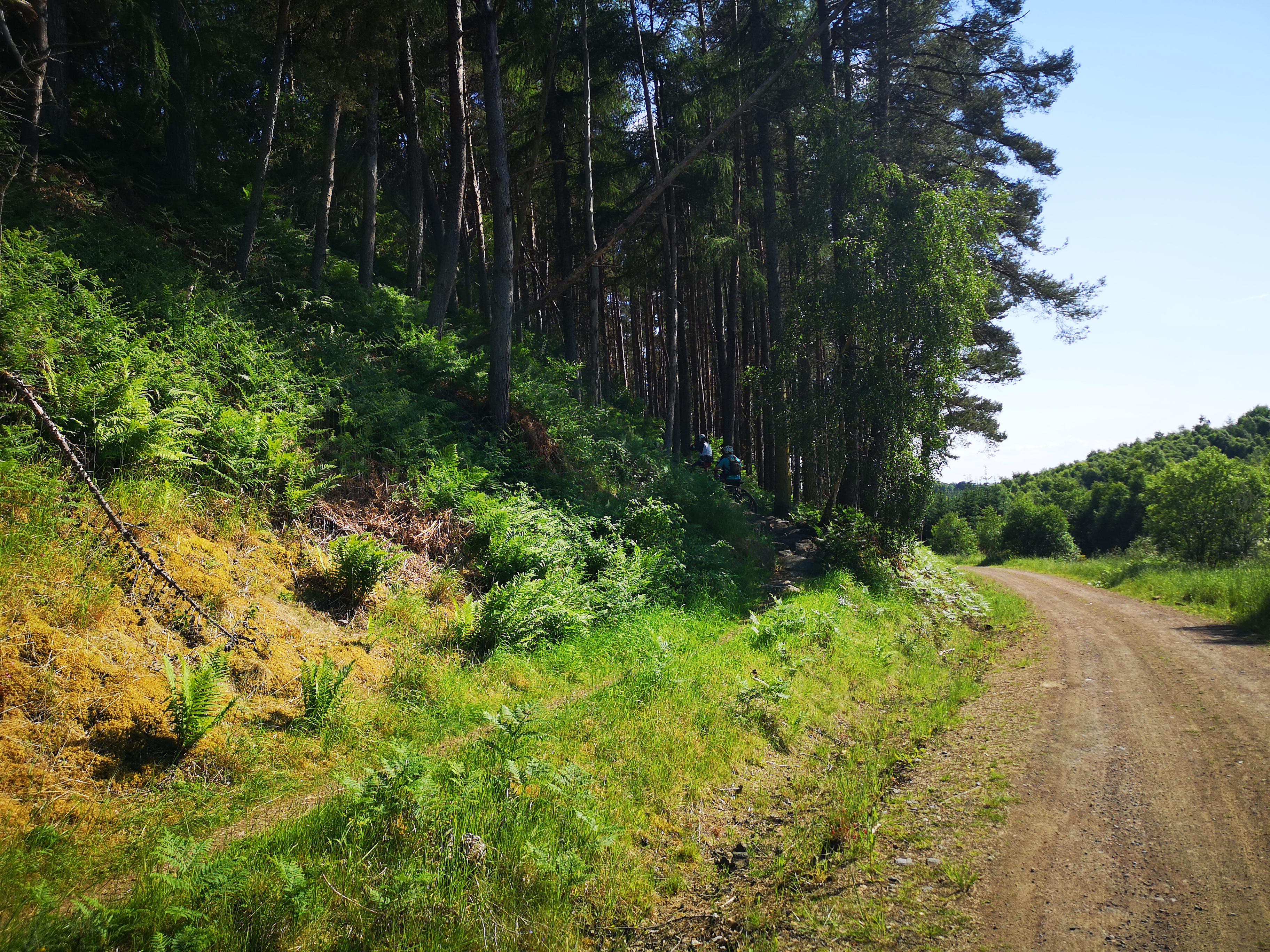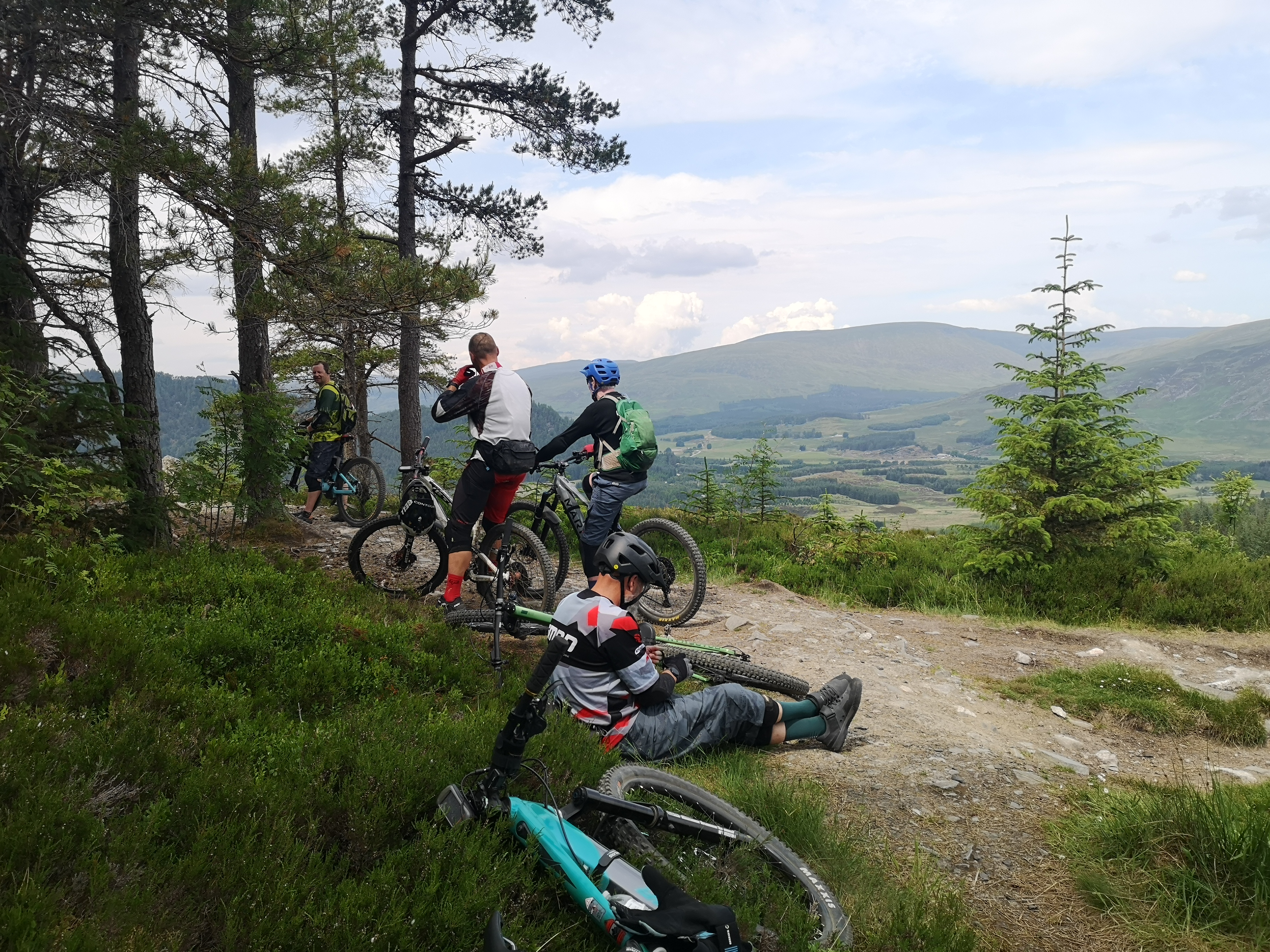 With another scorcher looming it was good to clear the long drag up the first climb with a bit of cloud cover and were well rewarded with that lovely, long, flowing descent. It took Ian a wee while to get into the cadence thing with the Alpine Trail eeb, but by the end of the ride he was desperate to find a shop selling lottery tickets. Grant also managed quite nicely on the Boardman's huge wheels, completely alien after jumping off his sadly smitten, possibly end-of-life 26er, and although you wouldn't have known it he swore he was being extra careful with Ian's bike.
