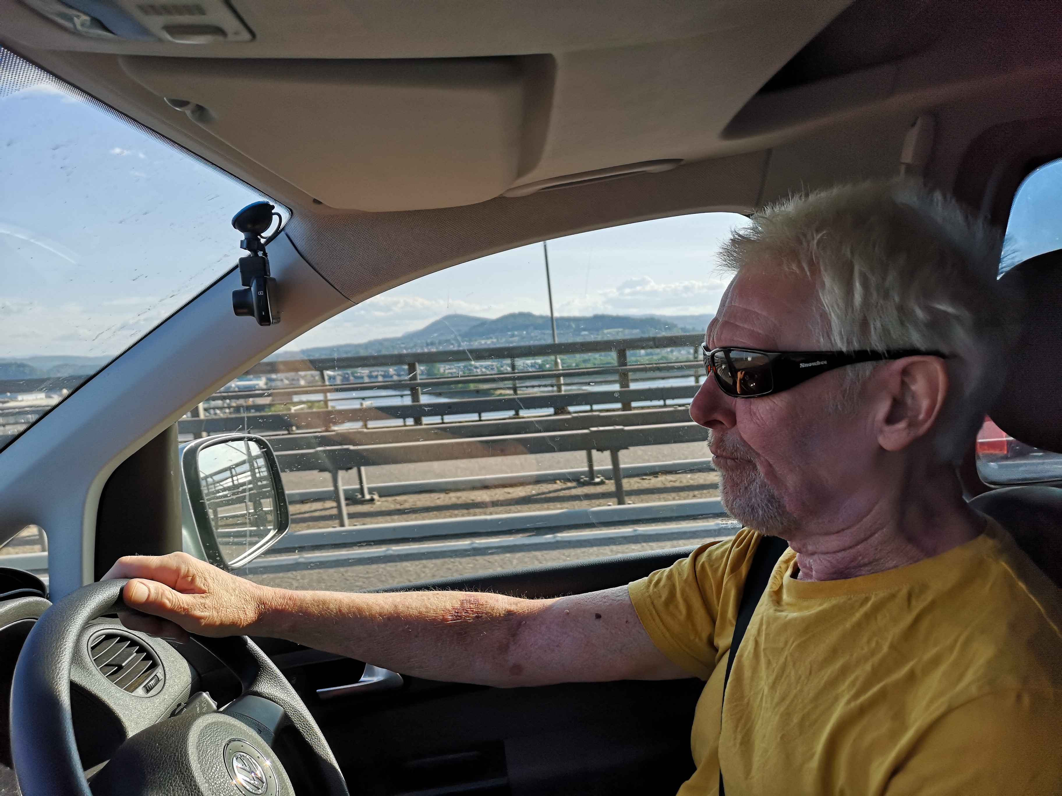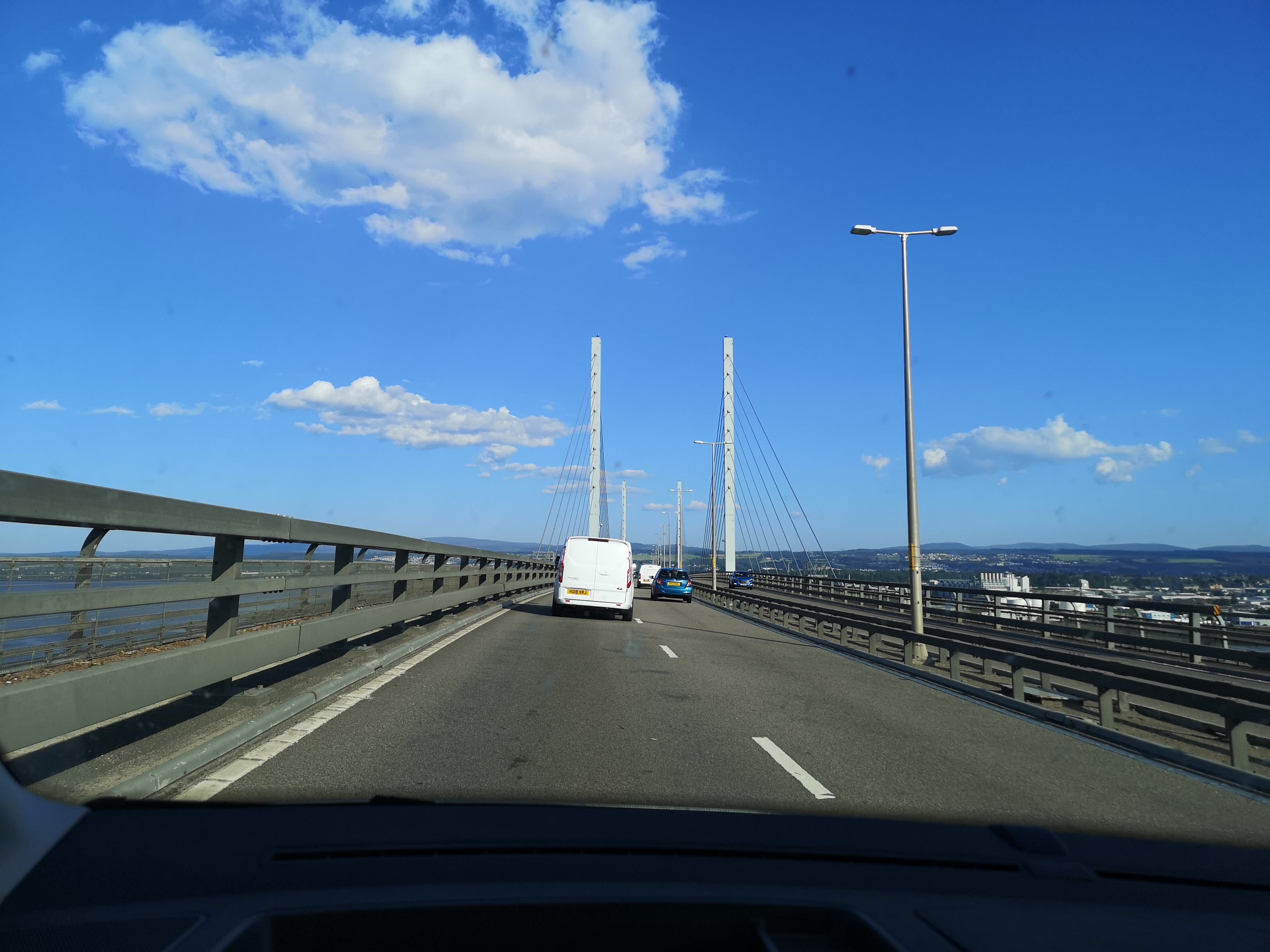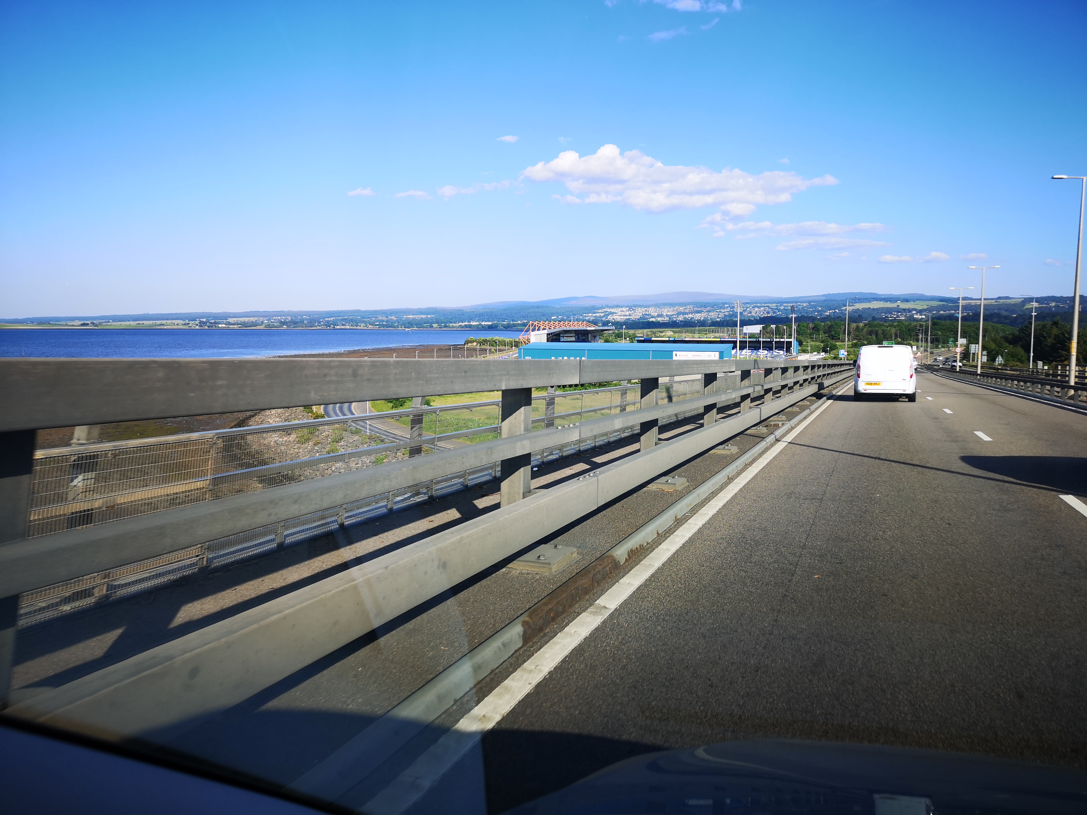 a) Stevie and navigator Tim taking the scenic Coast & Castle route to the Forth Road Bridge via the Seafield Seaside and busy streets of the City, rather than the A720 bypass. And the accidental stop for 2/3 of the party at Dunbar.
