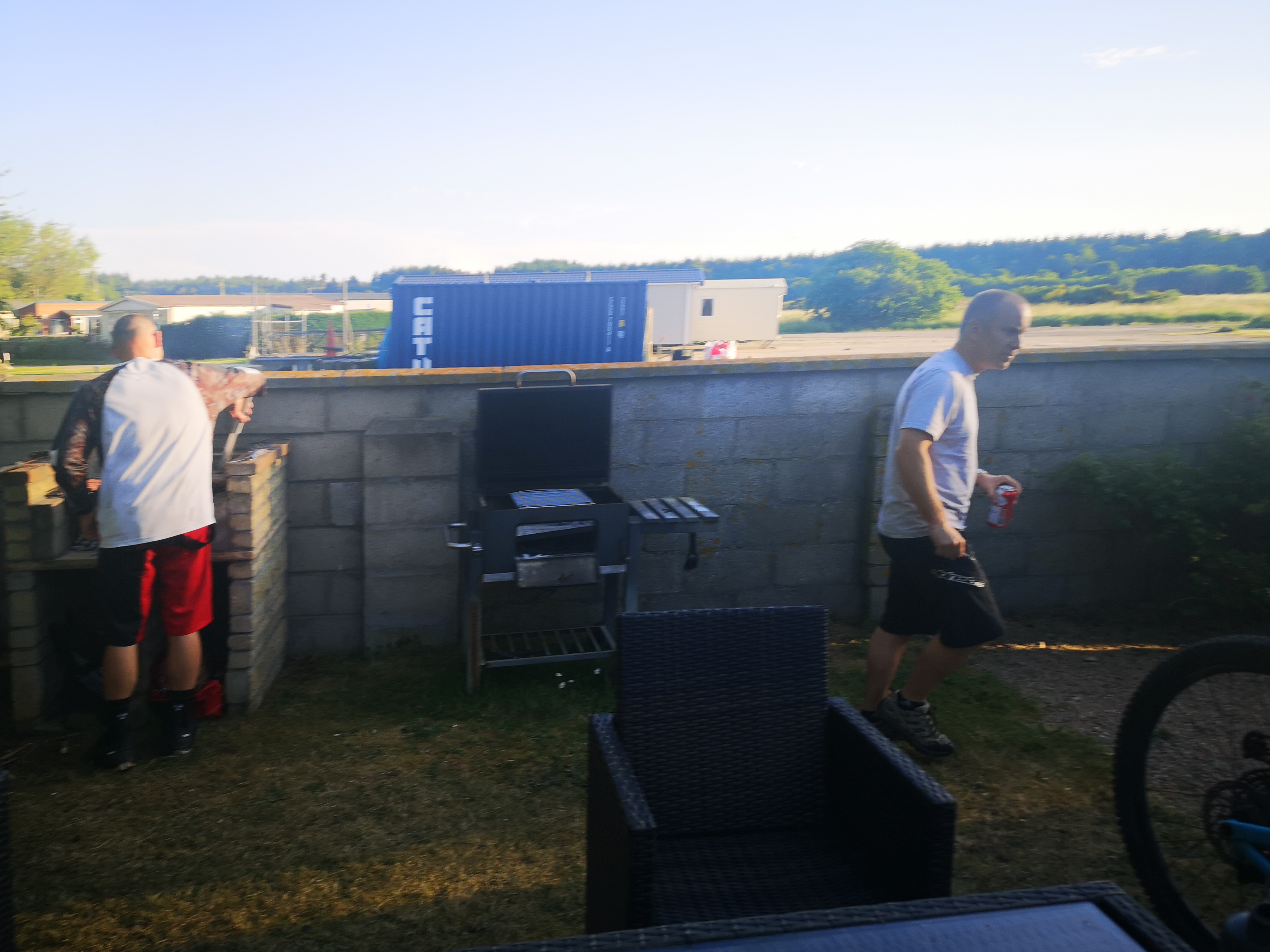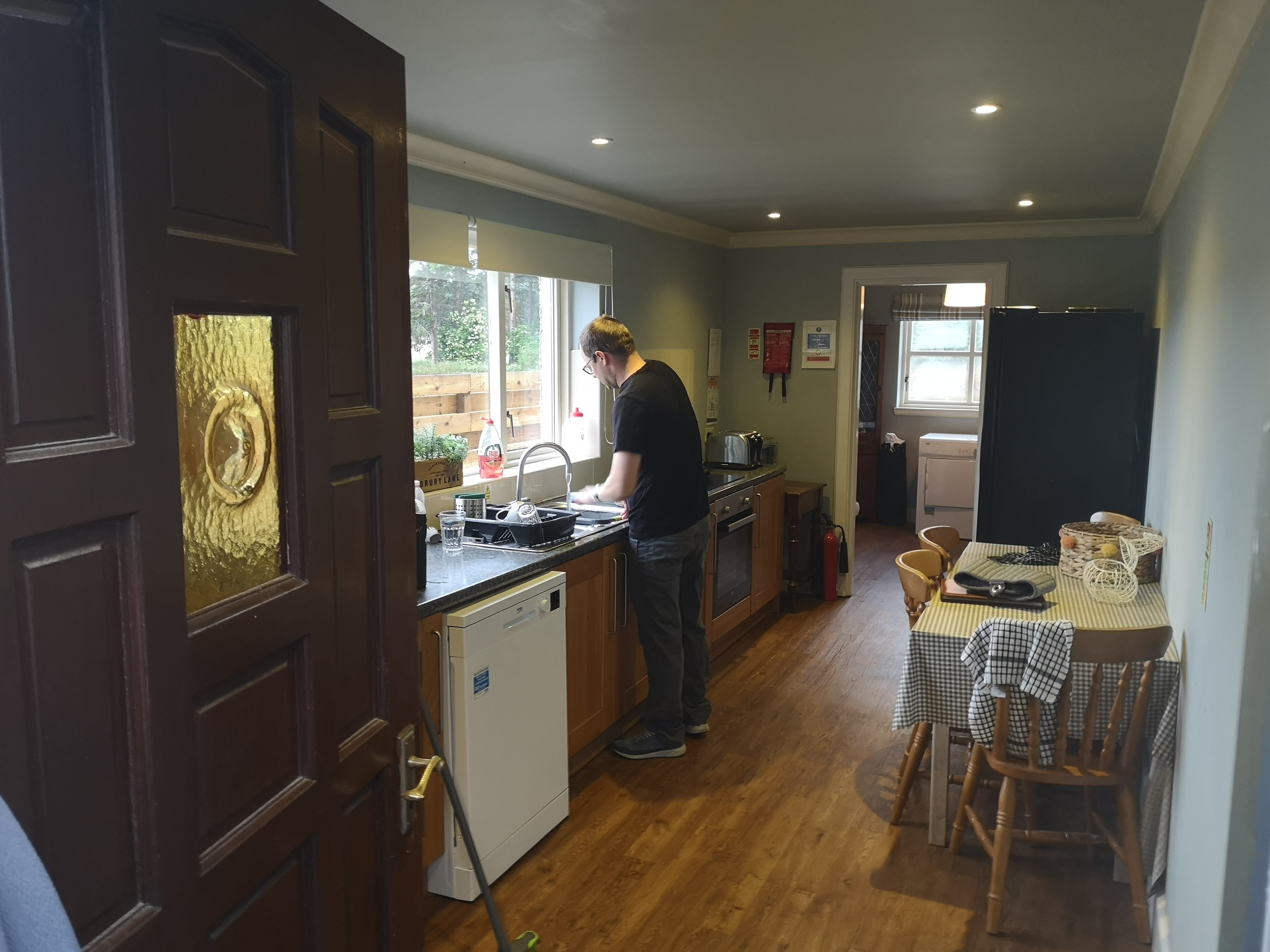 No, the "Staff" I'm on about is the gaggle I rode with. What a bunch of heroes. Come tidy-up day (Monday) I never noticed anyone not doing their bit. And all the way through I saw much more domestication than I'd expected. These folk can fend for themselves, unlike me. I would starve if left to my own devices, and have nowt clean to wear after two days. I haven't the faintest idea of how to use a dishwasher or a washing machine, although I did push a brush around the kitchen and hoover the ground floor carpets, whose very light colours somehow survived our visit unscathed. I can wash dishes manually but the super efficient NMBC fairies always got there first, leaving me with nowt to do but whinge and lay about doing nowt.