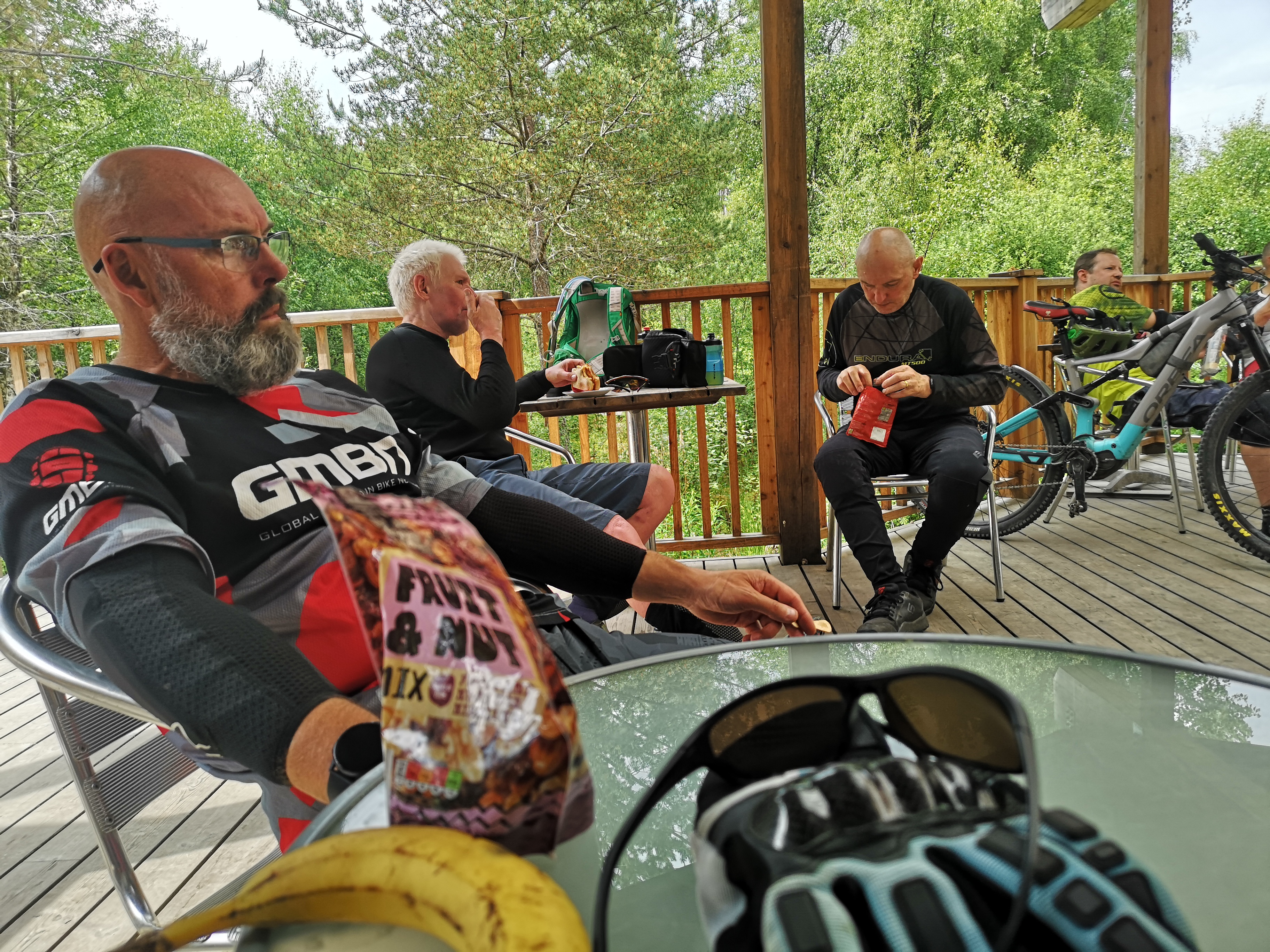 After forgetting to take any snackery out with me on this ride and probably suffering a bit because of it I made sure to make a mental note for the following day. With heat like we had up here it's extra important not only to stay hydrated but also keep the energy levels up. Whether you believe me or not I swear that riding an e-bike can take as much out of you as piloting an unassisted one and weirdly, especially when dawdling slowly uphill trying to stay behind a struggling straggler, that always hits me hard with the extra weight to keep upright.