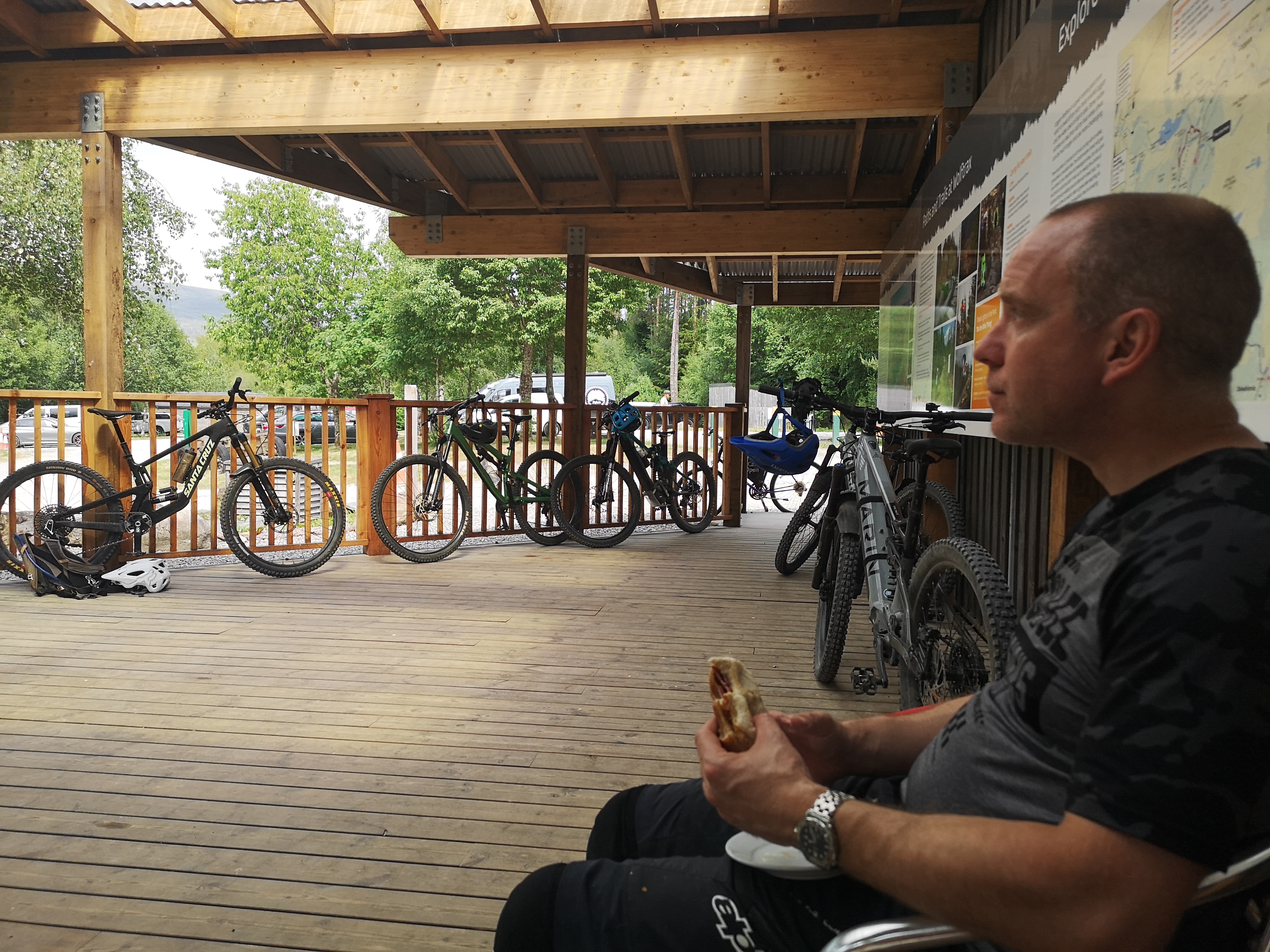 The trails were superb and it was hard to resist Tim's suggestion of doing another loop after we'd finished and pulled into the cafe for our refreshment rewards. When I think back he did this at a few other trails too but only got his wish at Learnie. I nipped along to see the resident mechanic in the bike shop first to enquire about a brake lever. Amazingly he had two full brakes in stock (SLX 4-potters) but wouldn't split a lever off the caliper and wanted £120 for the whole thing, duh.
