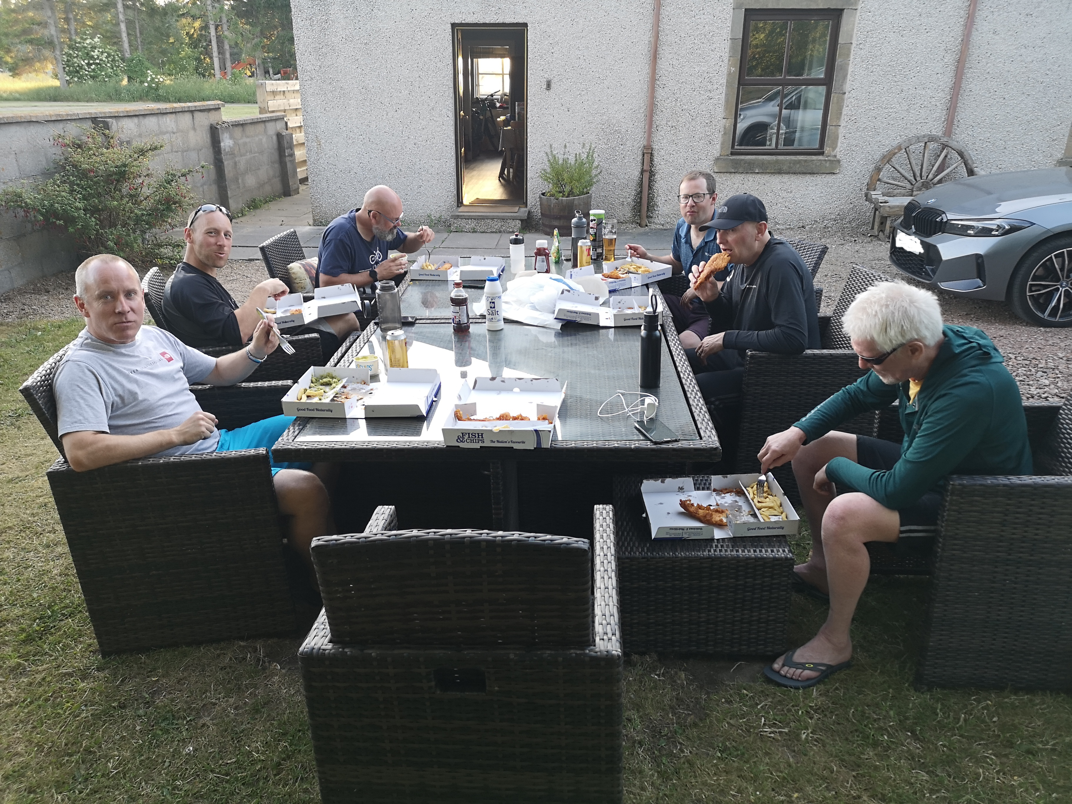 5. We were determined not to repeat last year's dietary disgrace by eating fish & chips every night but relented just for once after the initial Day One ride at Tarland on Thursday 15th and the food was terrible.