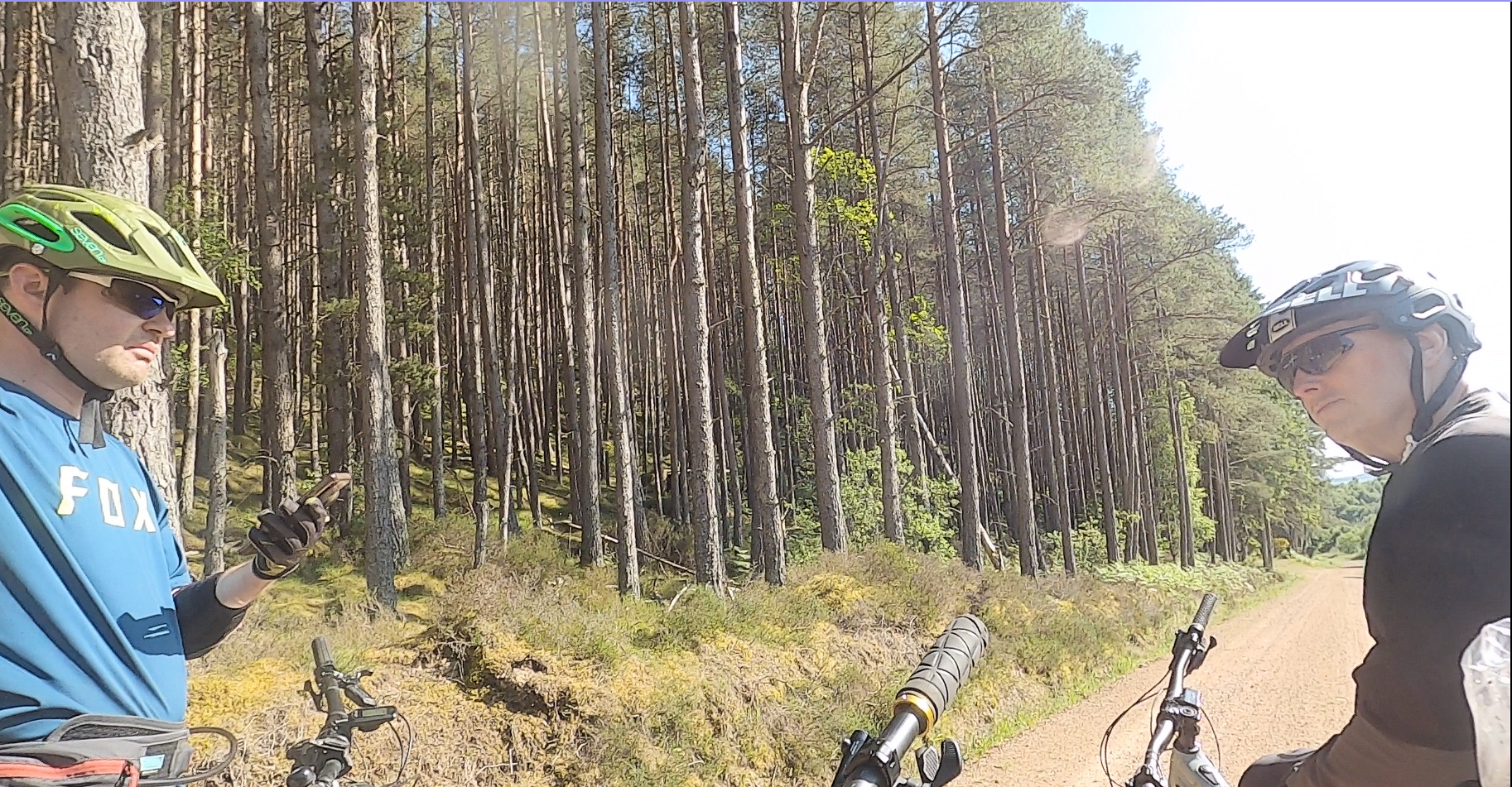 There'd been suggestions online about trail closures but we encountered none that would interfere with another excellent ride. I think it was somewhere on this trail that Young Terry had a small whoopsie when he and Ray went off-piste but was unhurt, and also where Ray took a tumble and jarred his shoulder, which would punish him on the final descent at Glenlivet the following day. Tim decides which way we go.